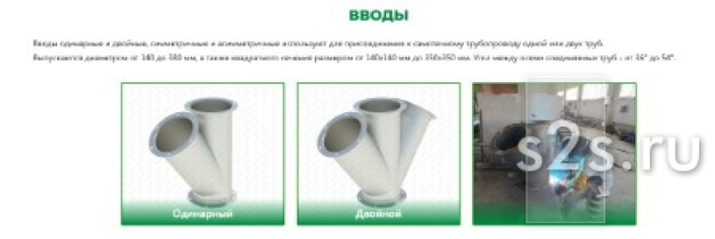 Вводы одинарные и двойные, симметричные и асимметричные используют для присоединения к самотечному трубопроводу одной или двух труб.