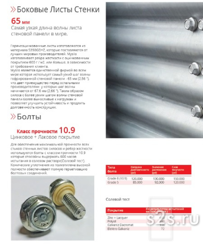 • минимальный шаг волны на листах обшивки и высокопрочные метизы для их соединения между собой обеспечивают прочность конструкции, как при загрузке силоса, так и при выгрузке;