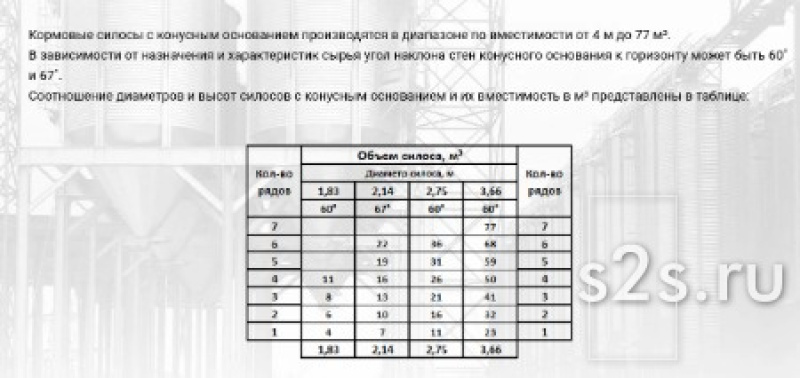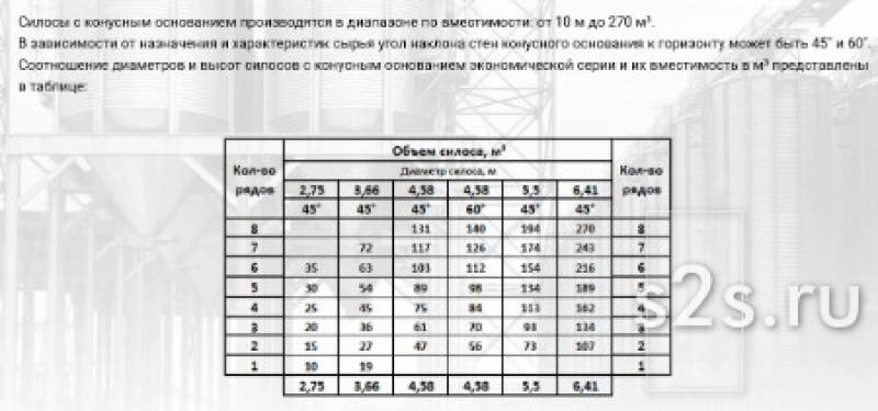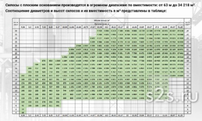 Соотношение диаметров и высот силосов и их вместимость в м³ представлены в таблице:
