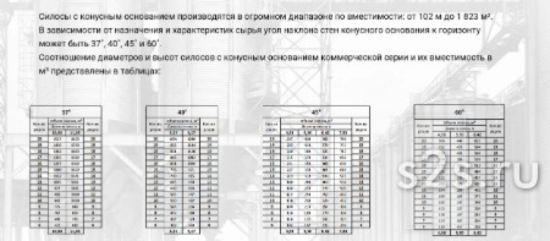 Силосы с плоским основанием производятся в огромном диапазоне по вместимости: от 63 м до 34 218 м³.